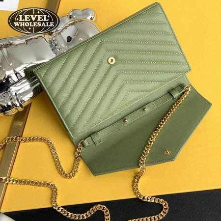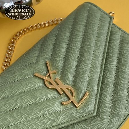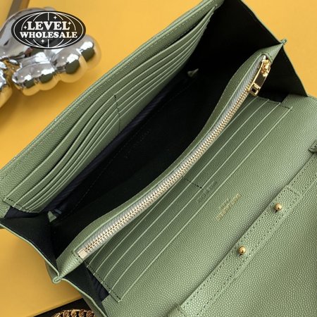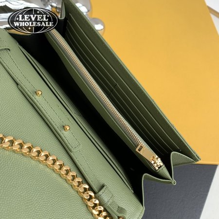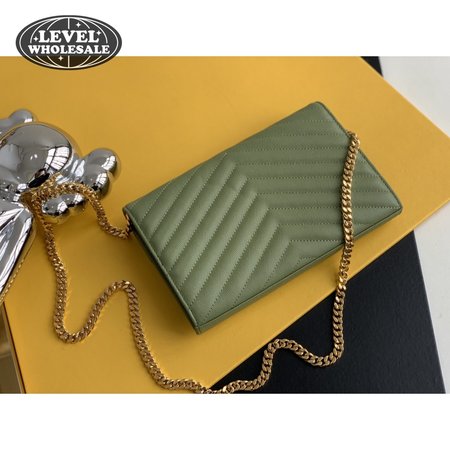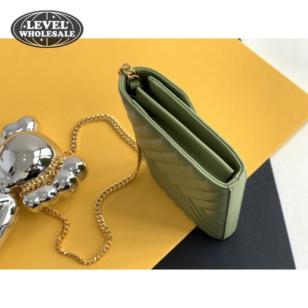 Saint Laurent Monogram Embossed Light Sage Leather Chain Wallet