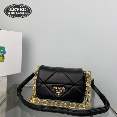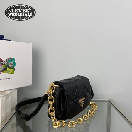 Prada System Nappa Patchwork Shoulder Bag Black 1BD292