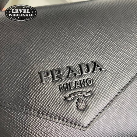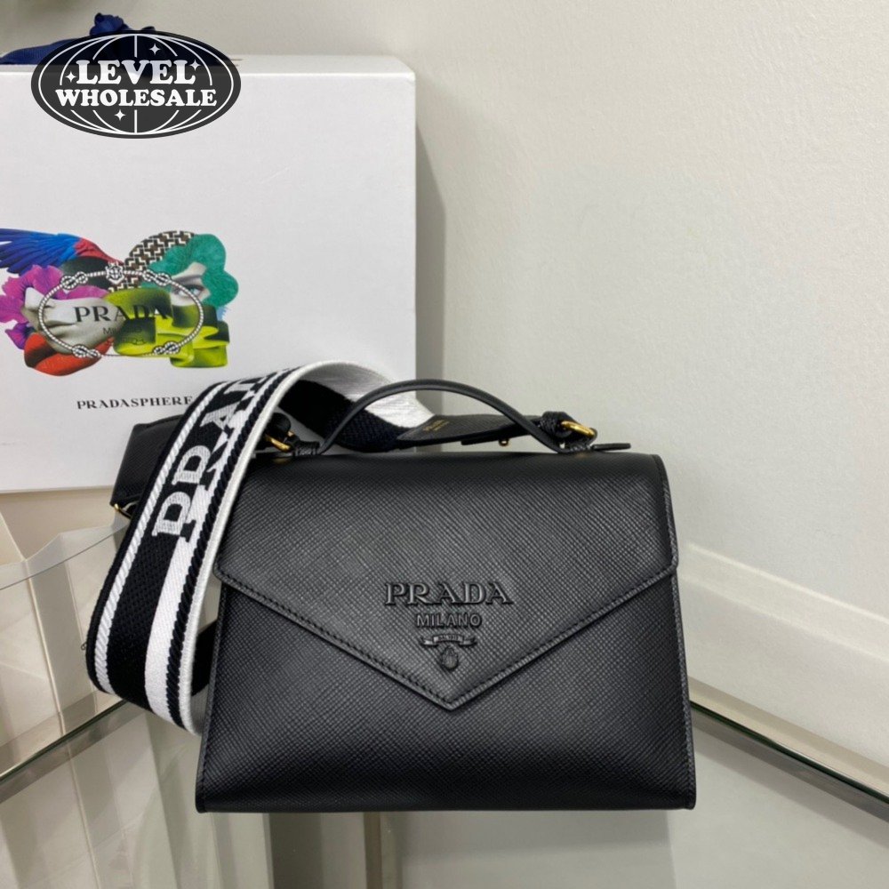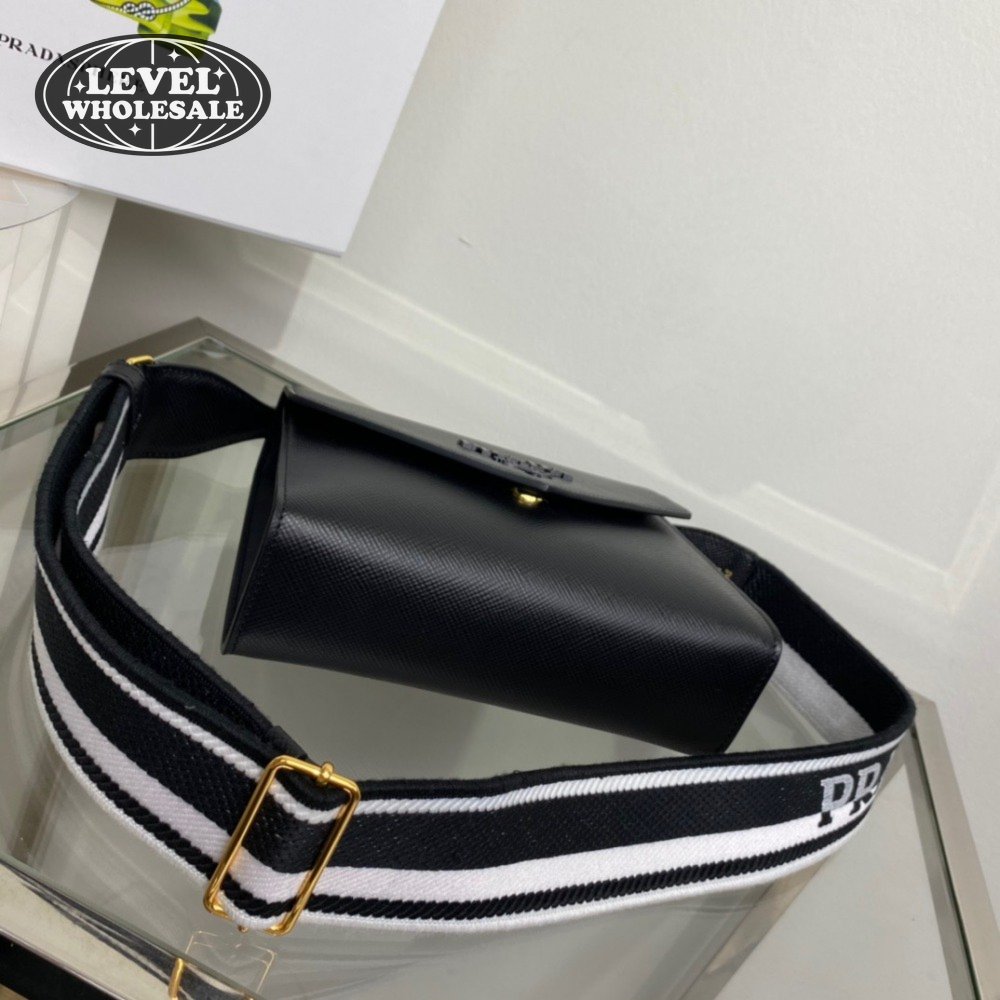 Prada Monochrome Saffiano And Leather Bag Black 1BD317