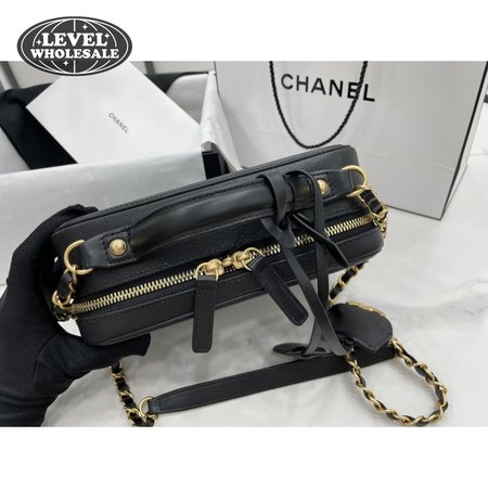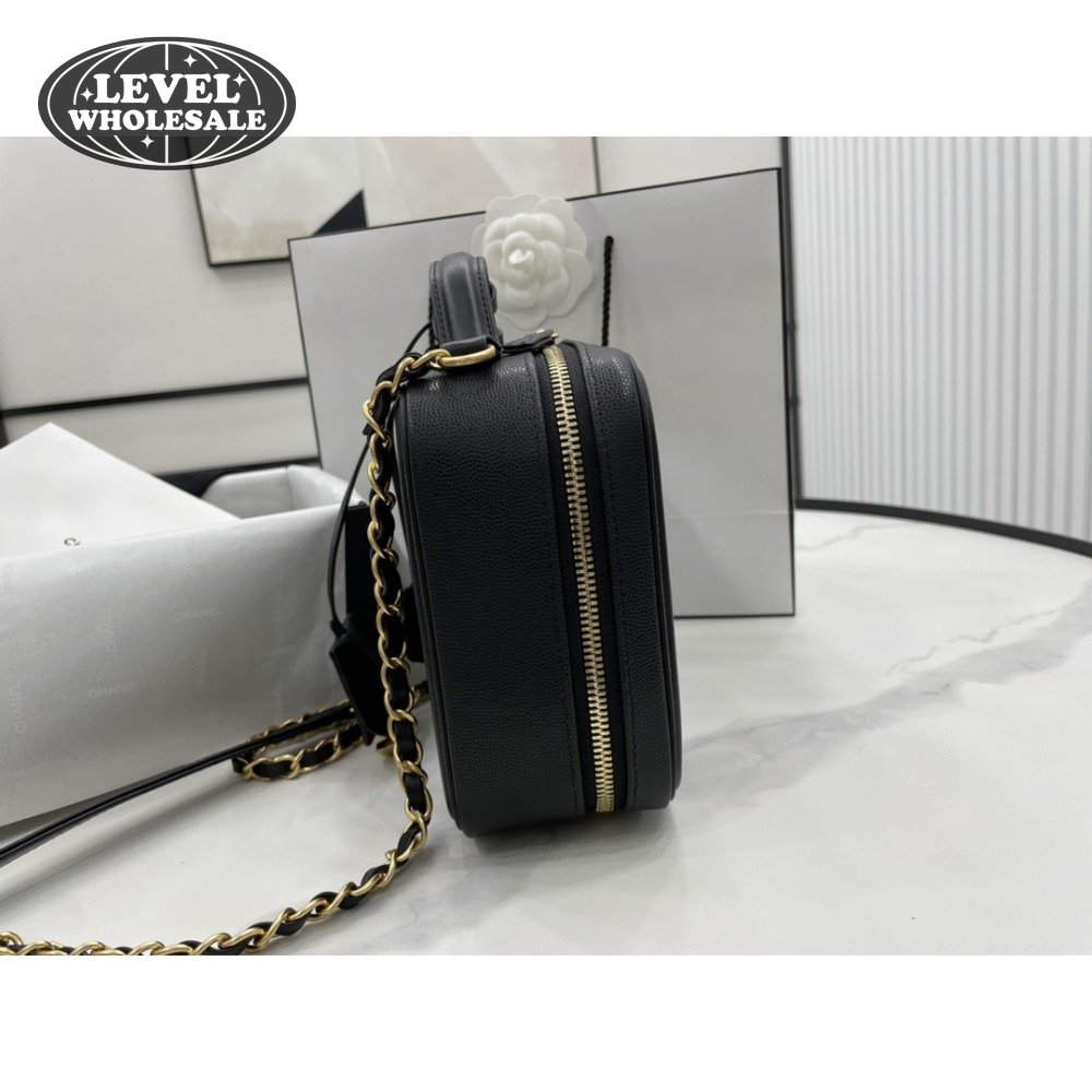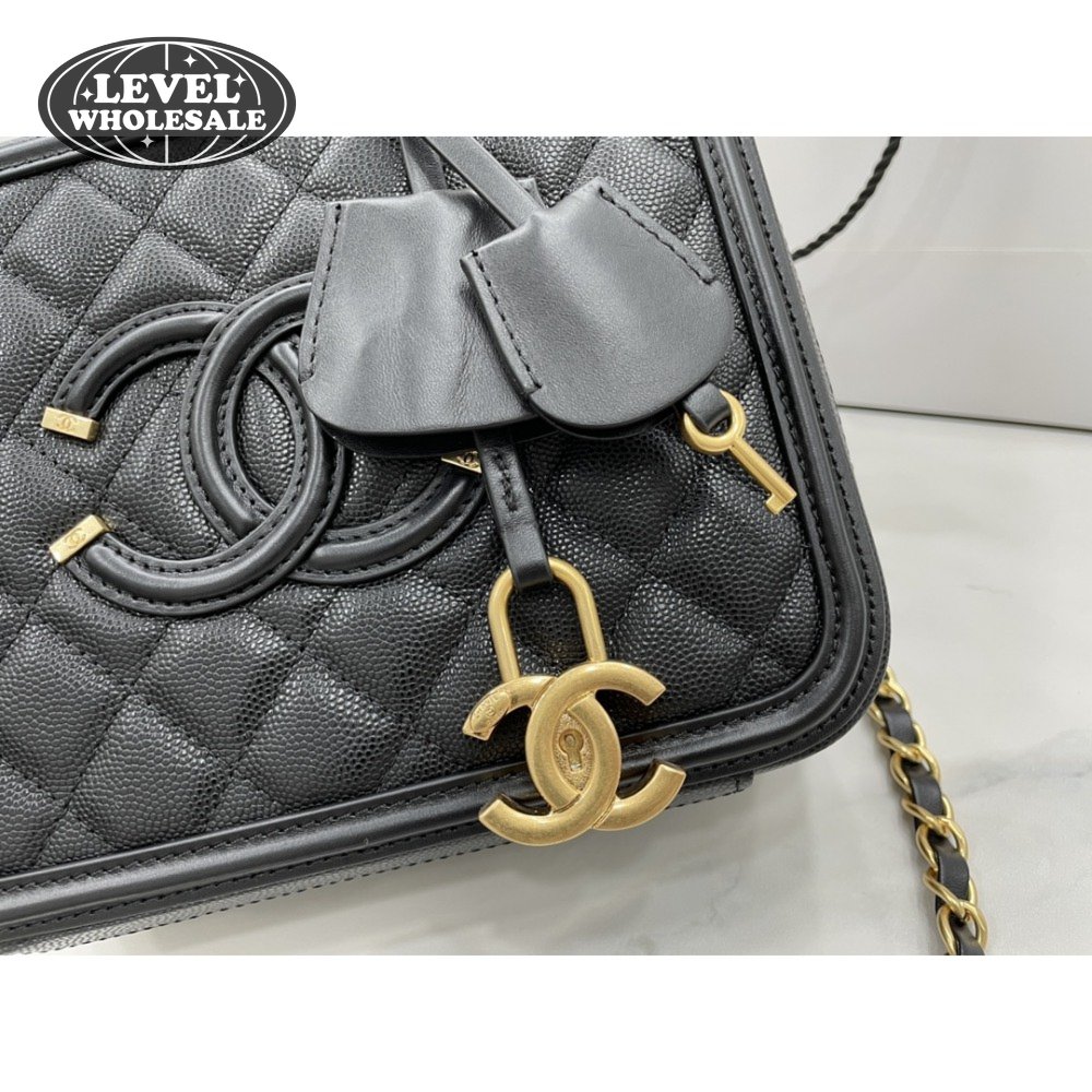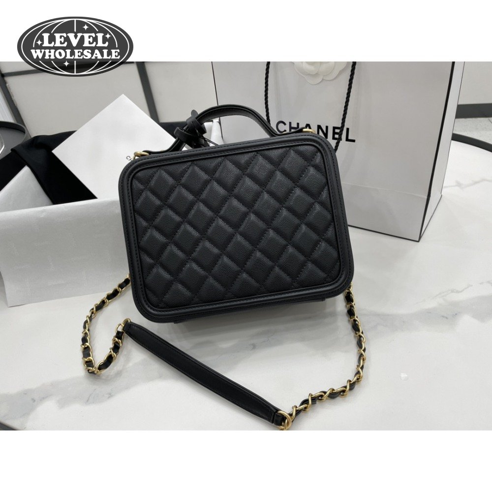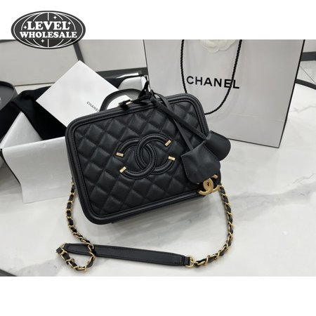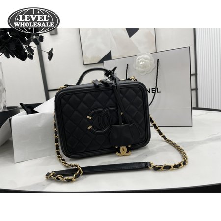 Chanel CC Filigree Vanity Case Quilted Medium Black