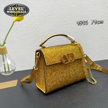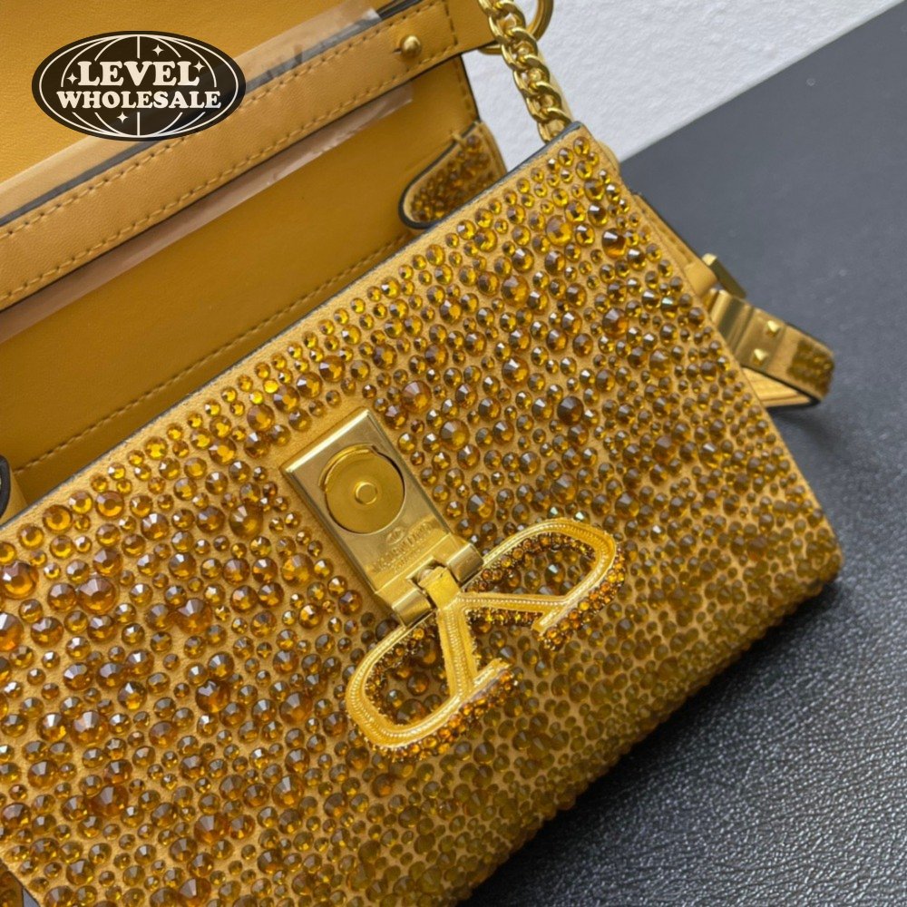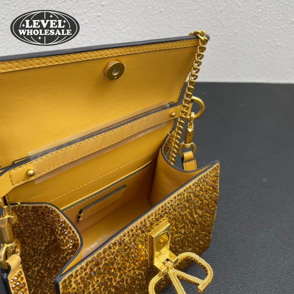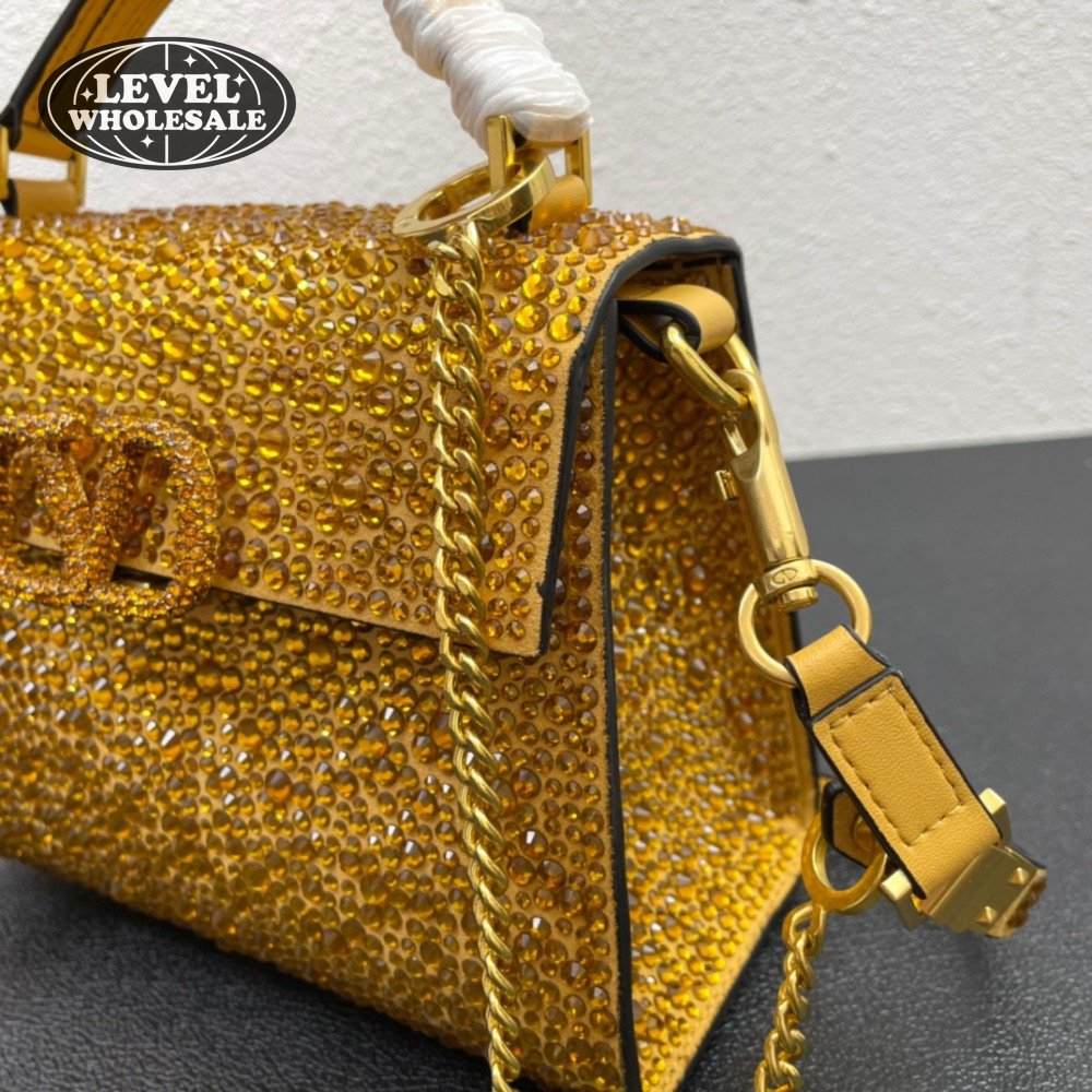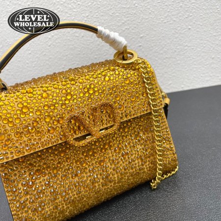 Valentino Mini Vsling Handbag With Rhinestones Gold