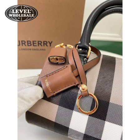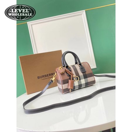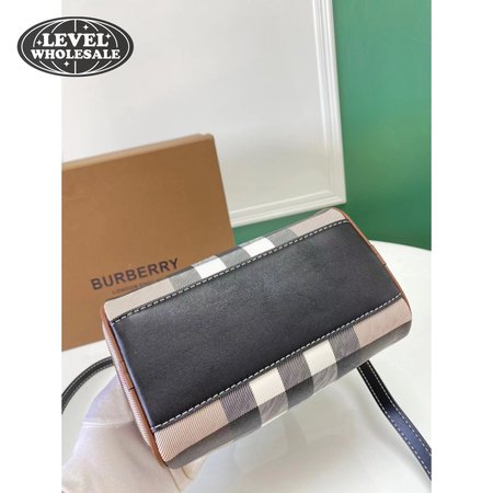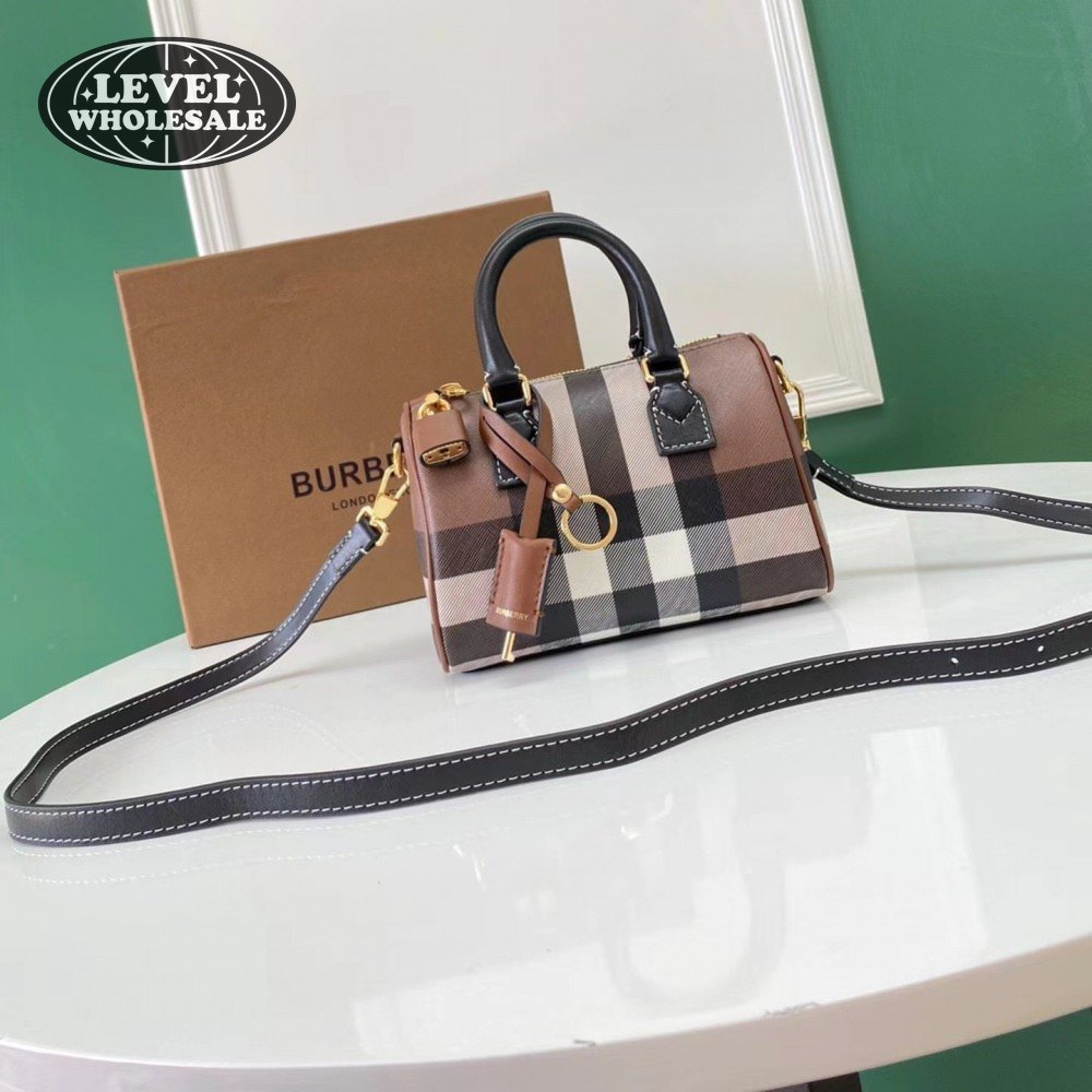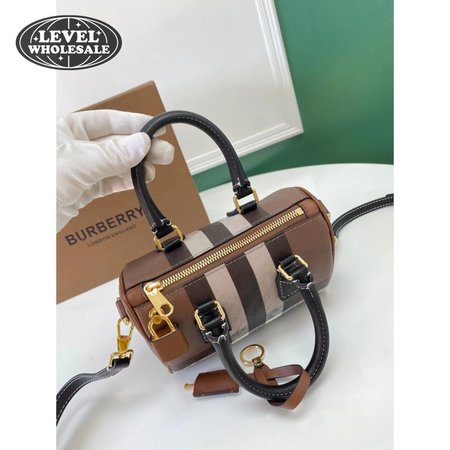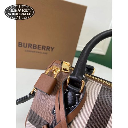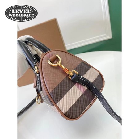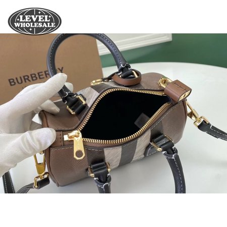 Burberry Check And Leather Mini Bowling Bag Dark Birch Brown 80534961