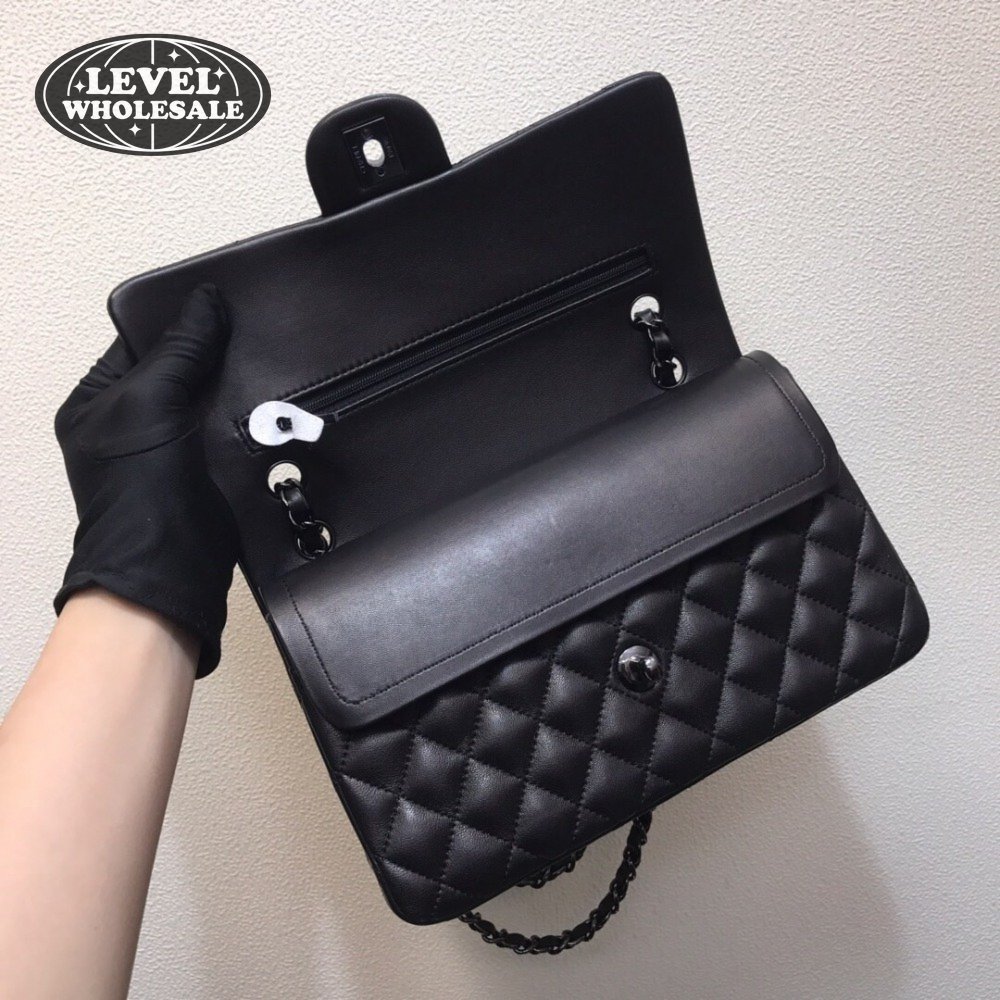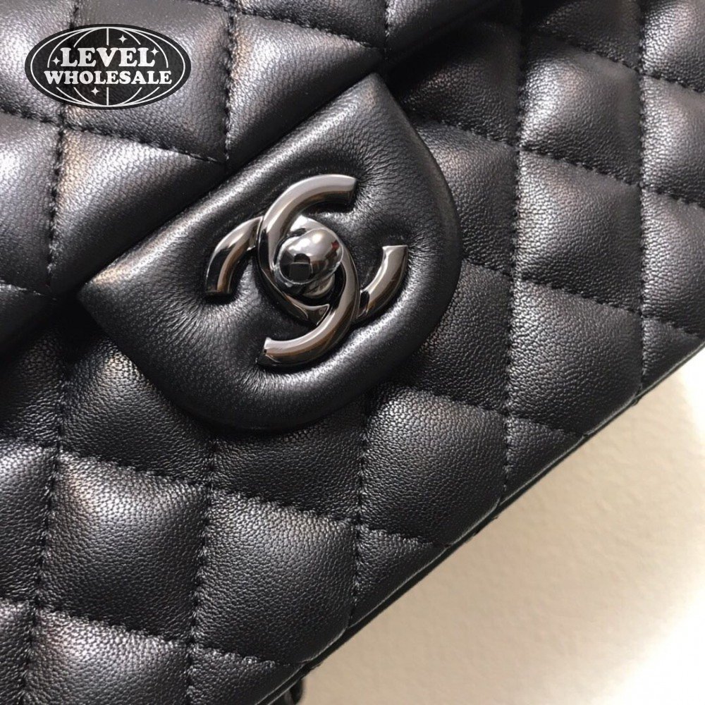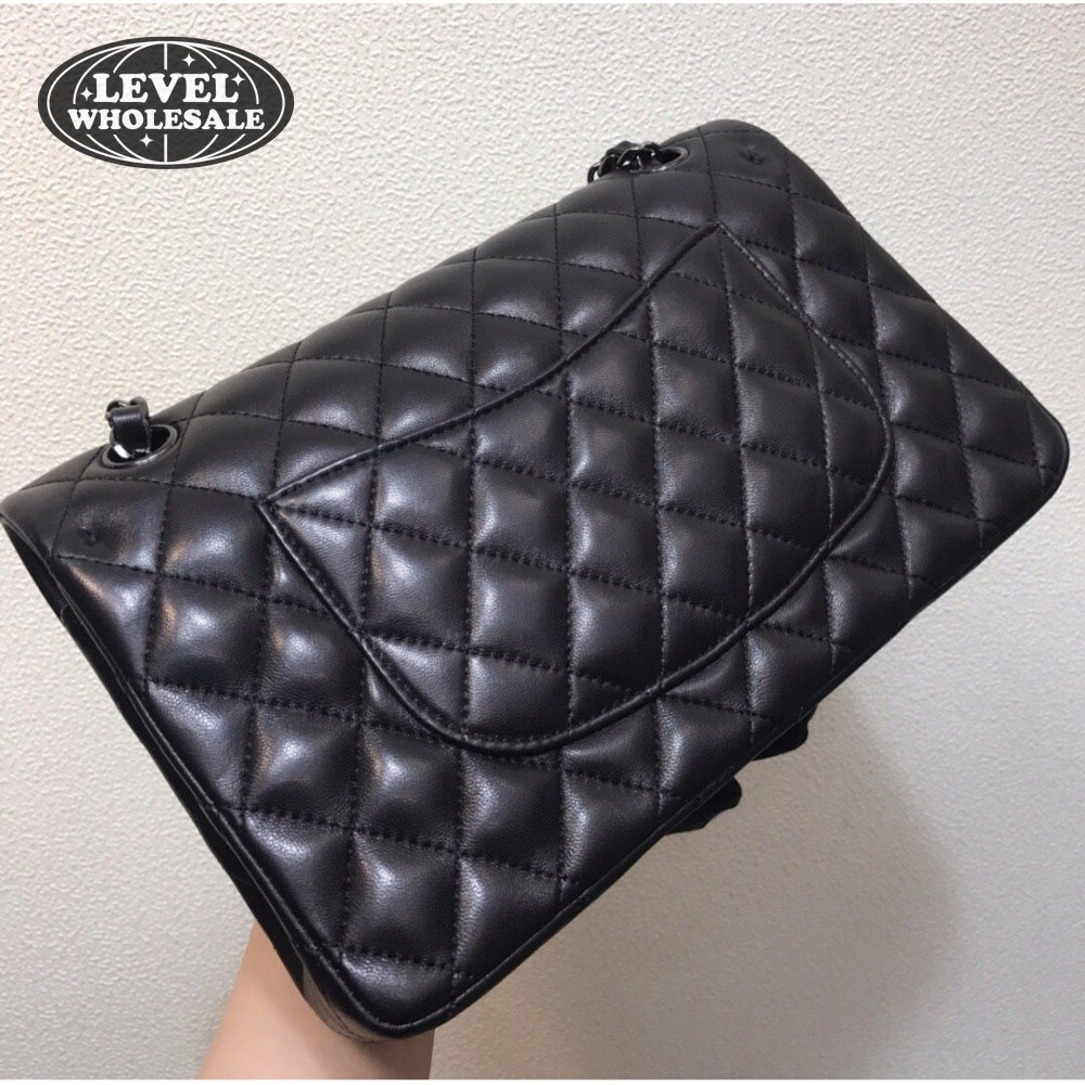 Chanel Classic Handbag Pearly Lambskin & Black-tone Metal Black