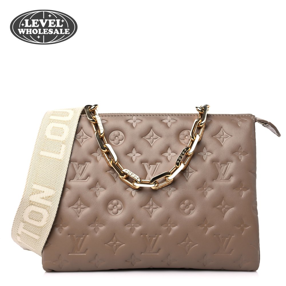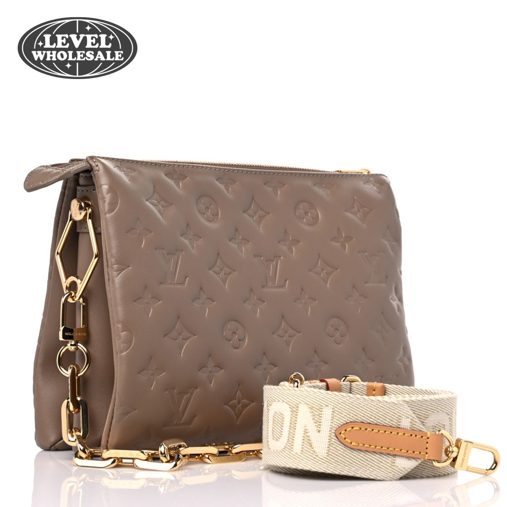 Lambskin Embossed Monogram Coussin PM Taupe