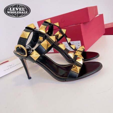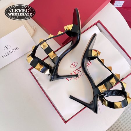 Valentino Roman Stud Calfskin Sandal 100mm Black 35-39