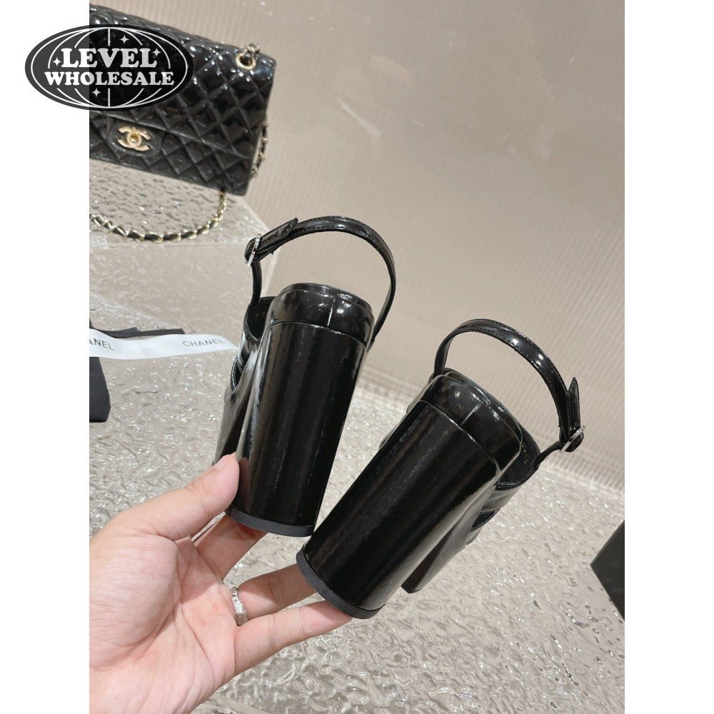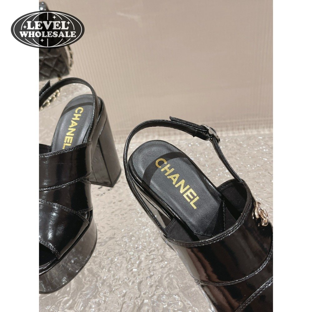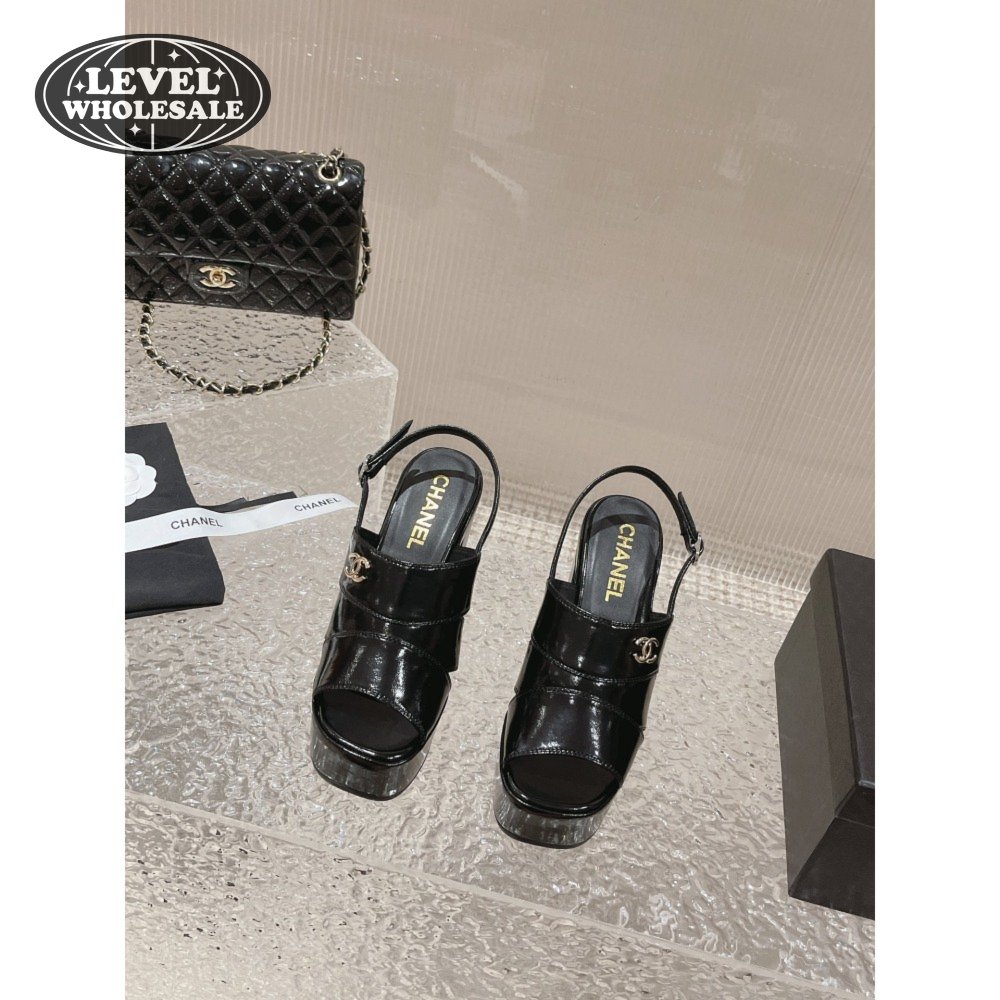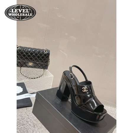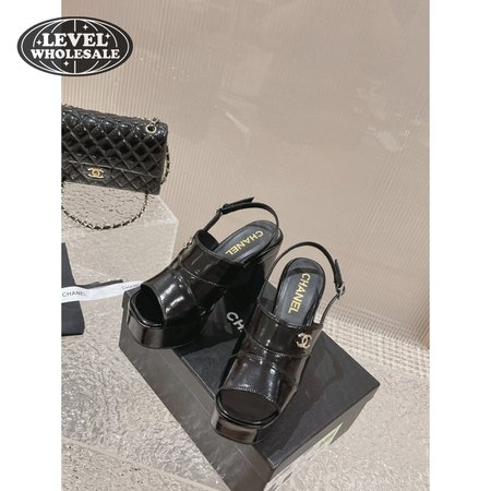 Chanel Sandal Patent Crumpled Lambskin Black