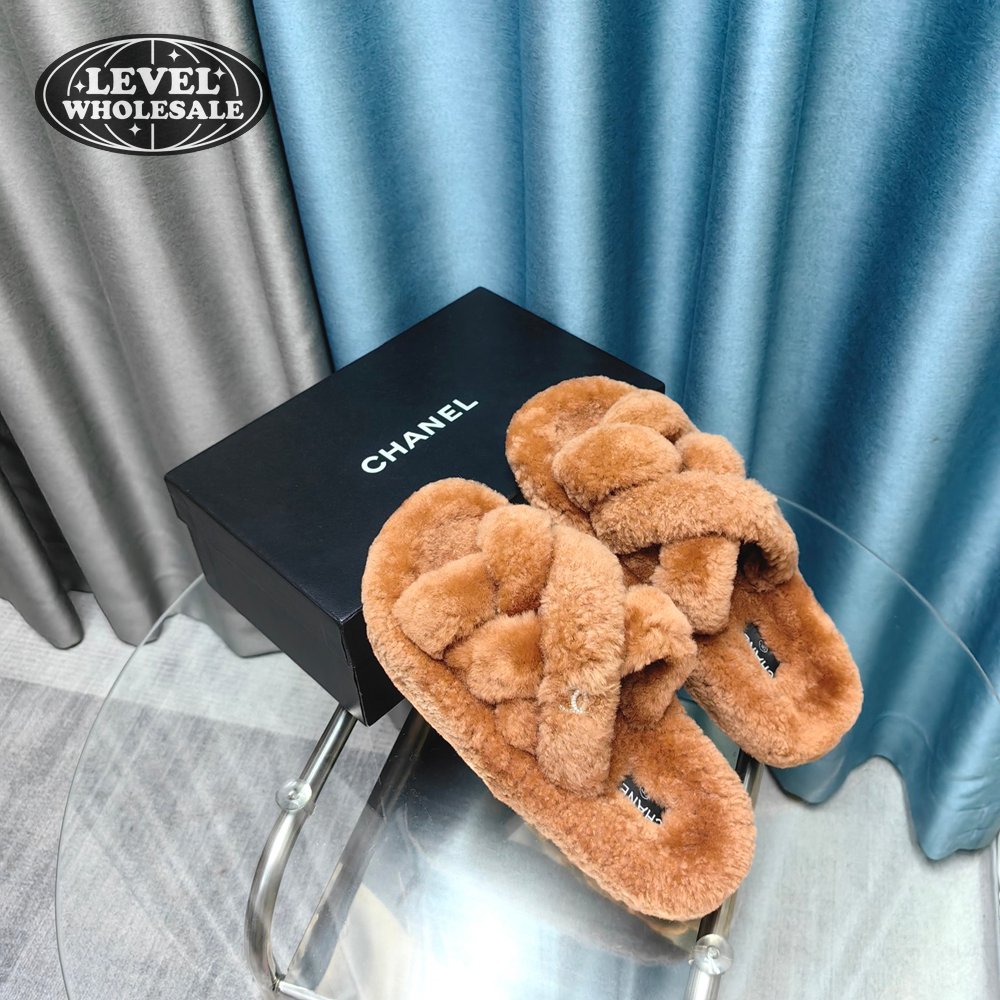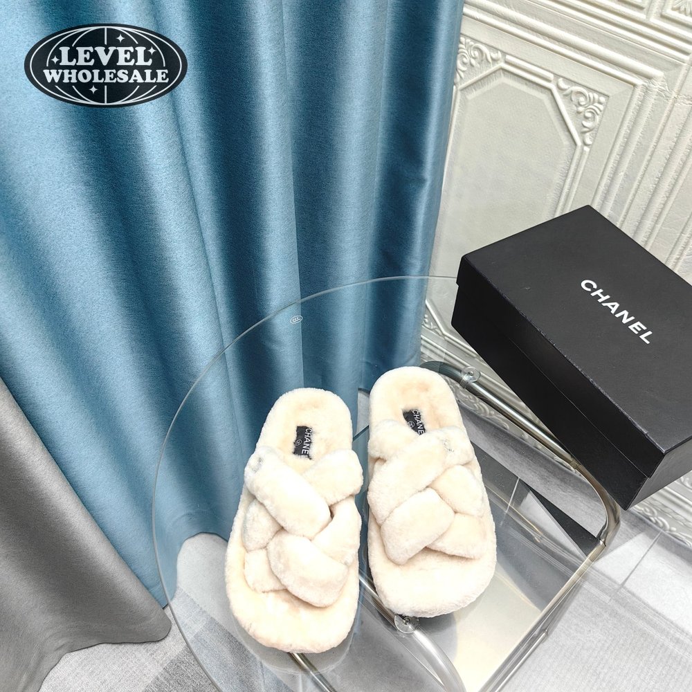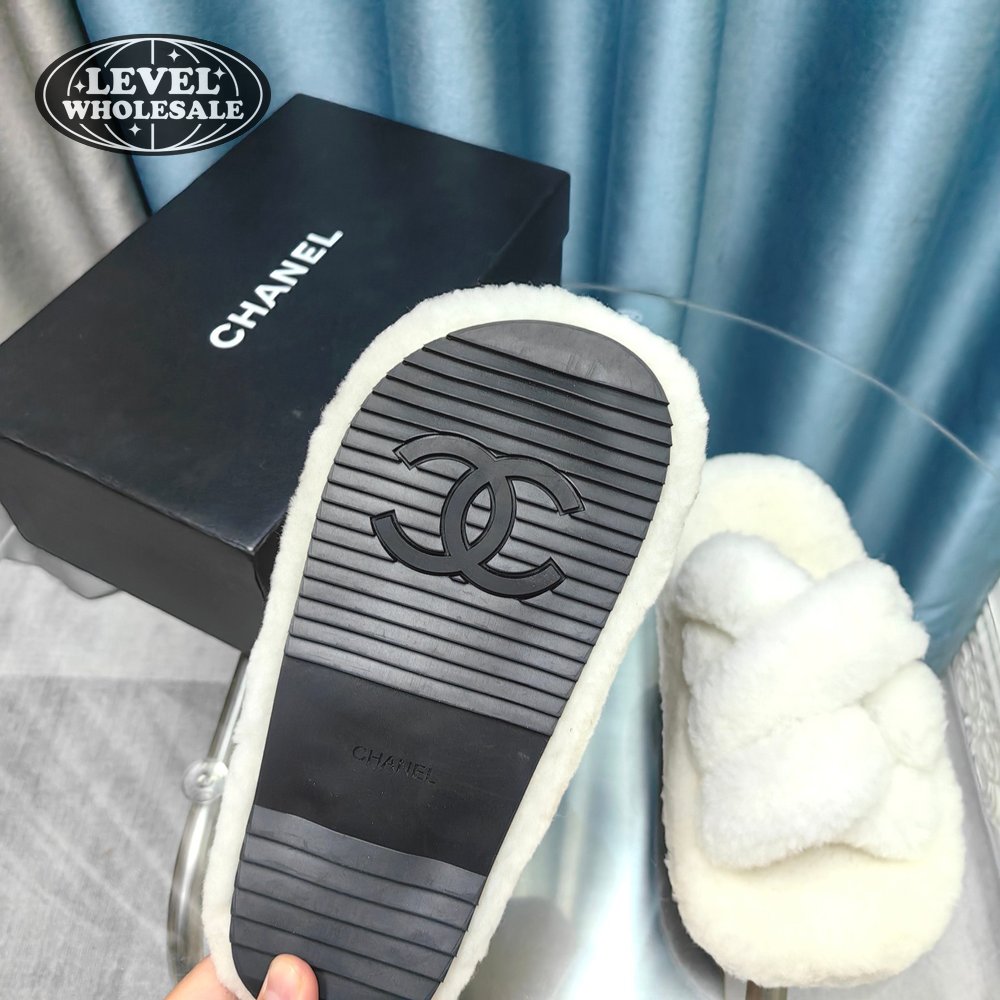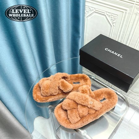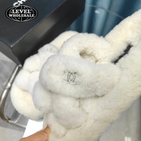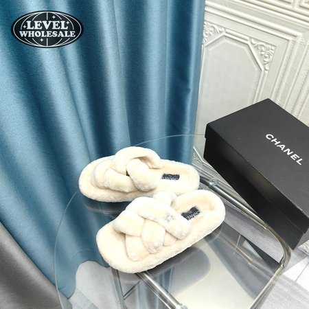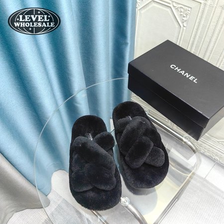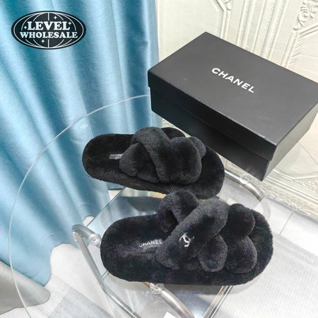Chanel Women's Cross Band Slippers Fuzzy Slippers