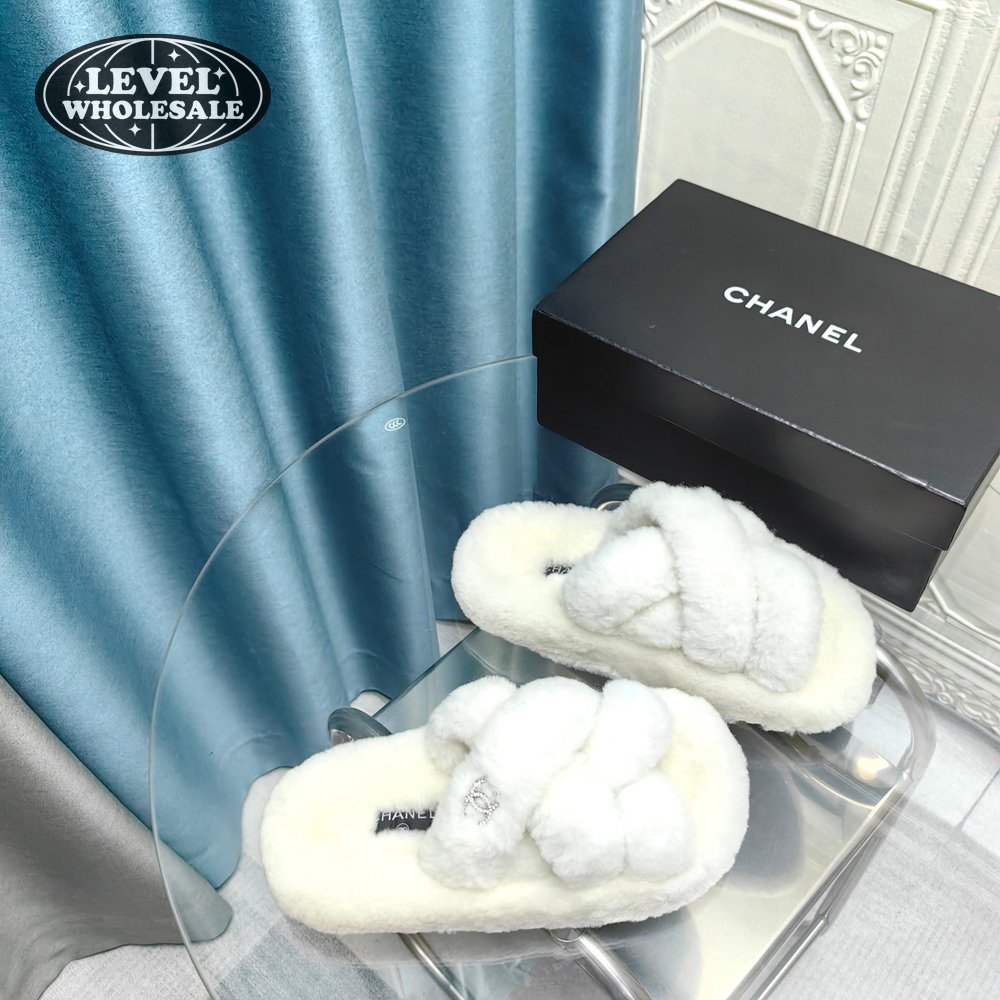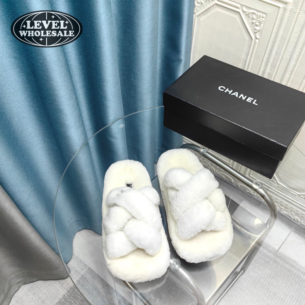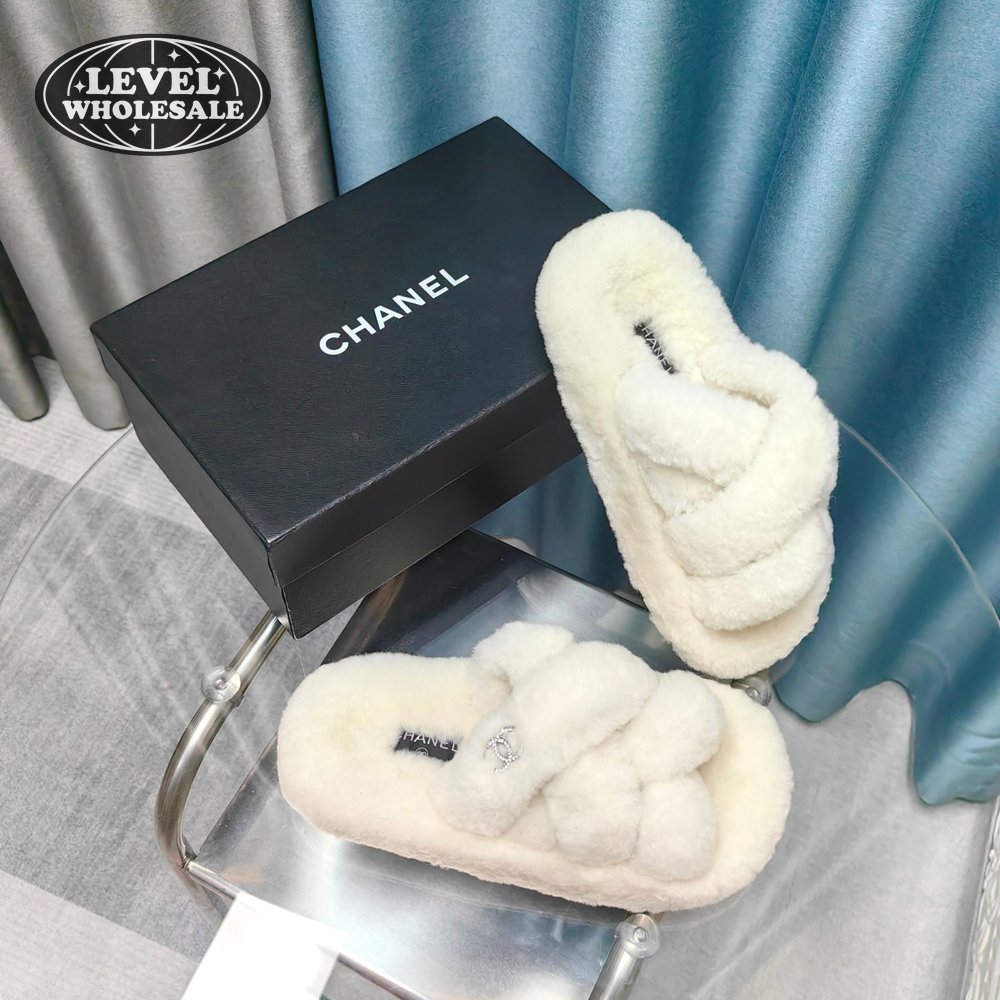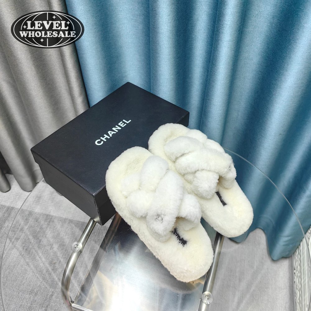 Chanel Women's Cross Band Slippers Fuzzy Slippers