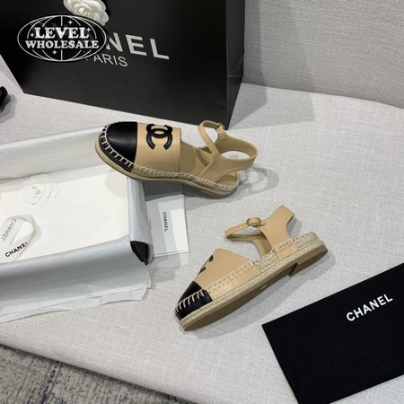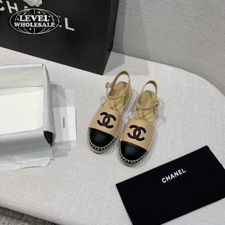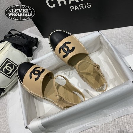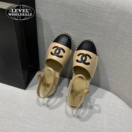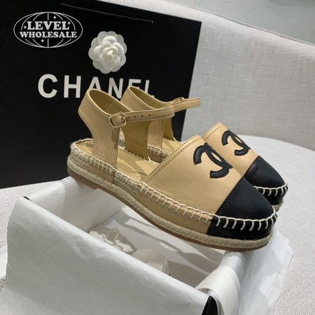 Chanel Women's CC Cap Toe Ankle Strap Espadrilles Leather