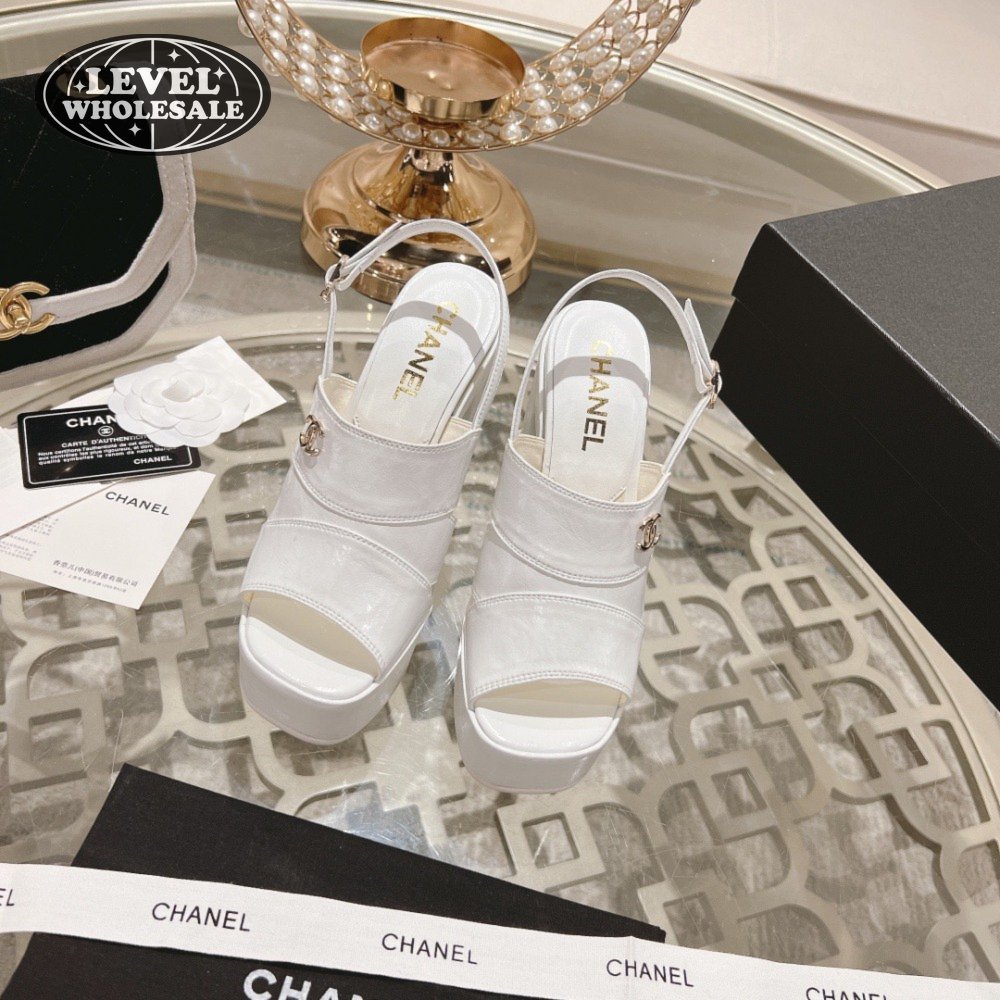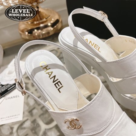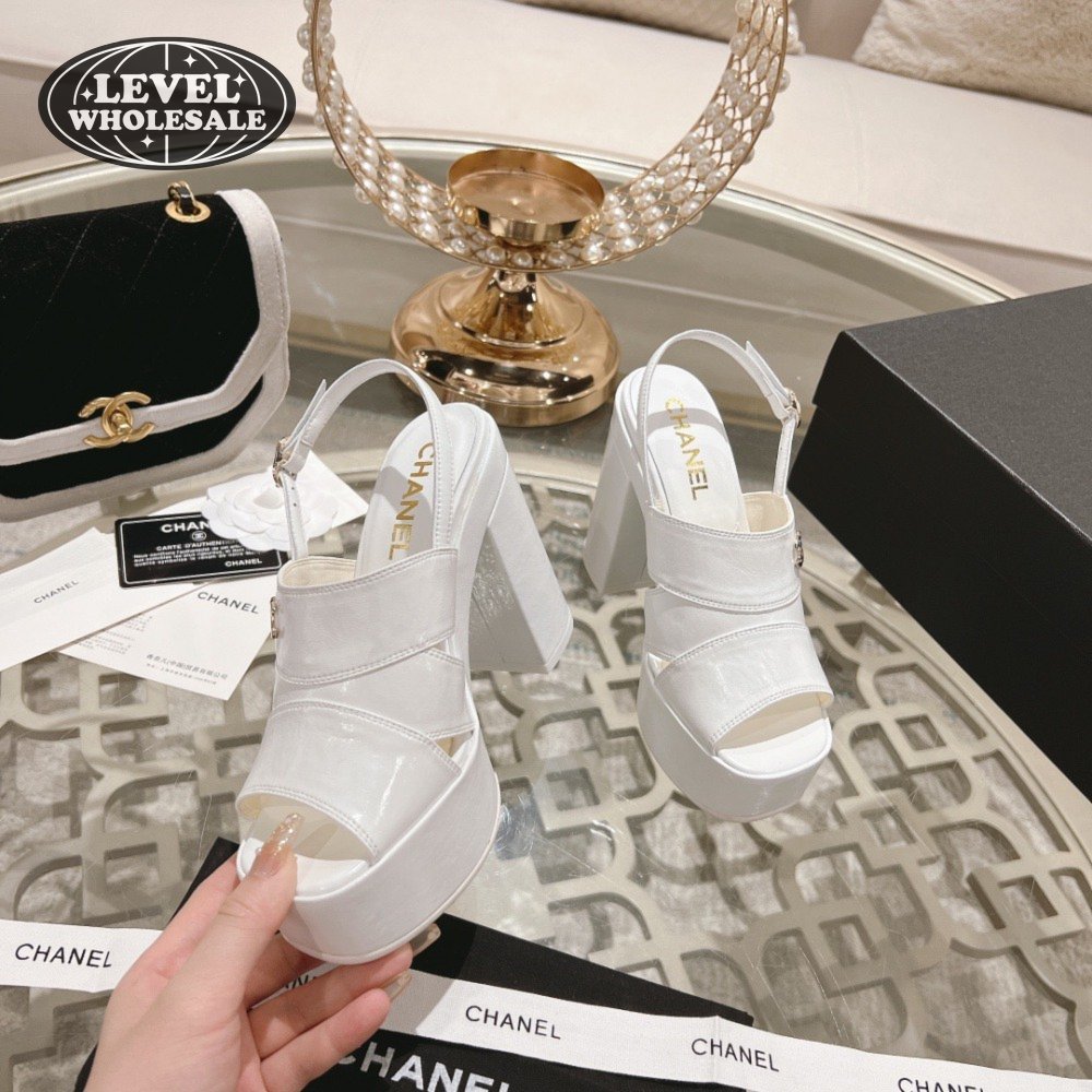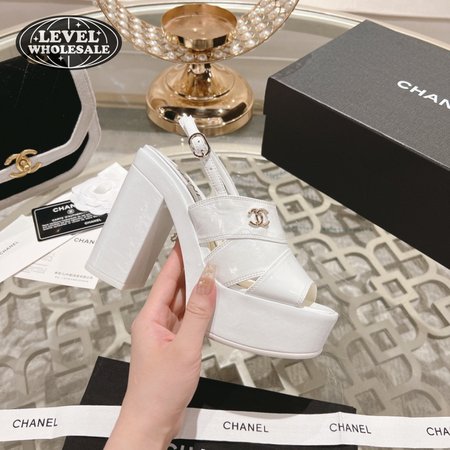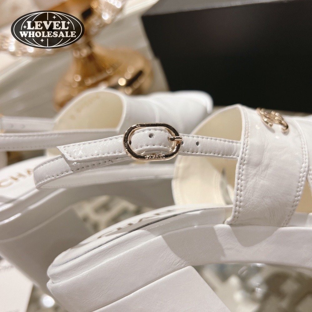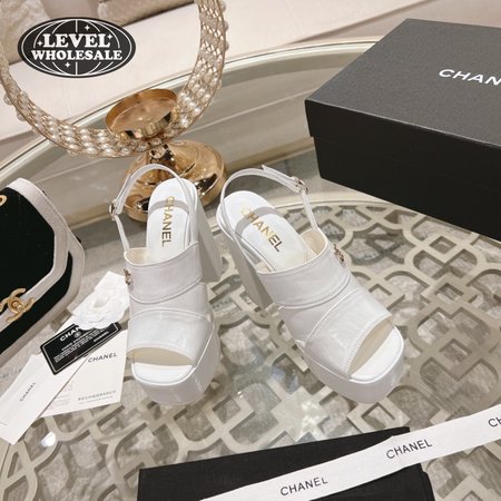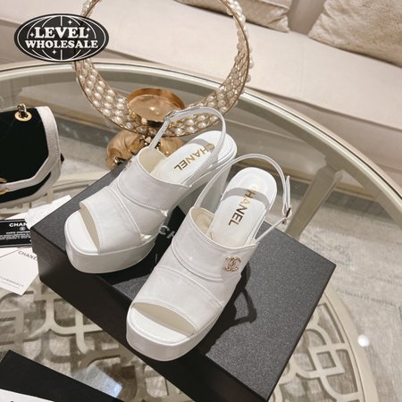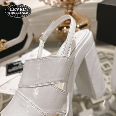 Chanel Sandal Patent Crumpled Lambskin White