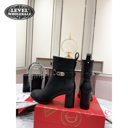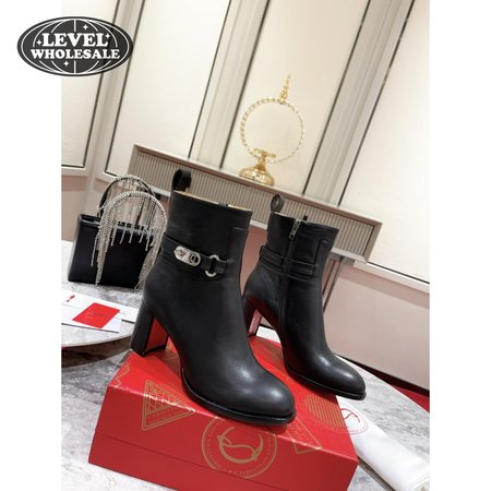 Christian Louboutin Lock Booty 70mm Ankle Boots Calf Leather Black 35-39