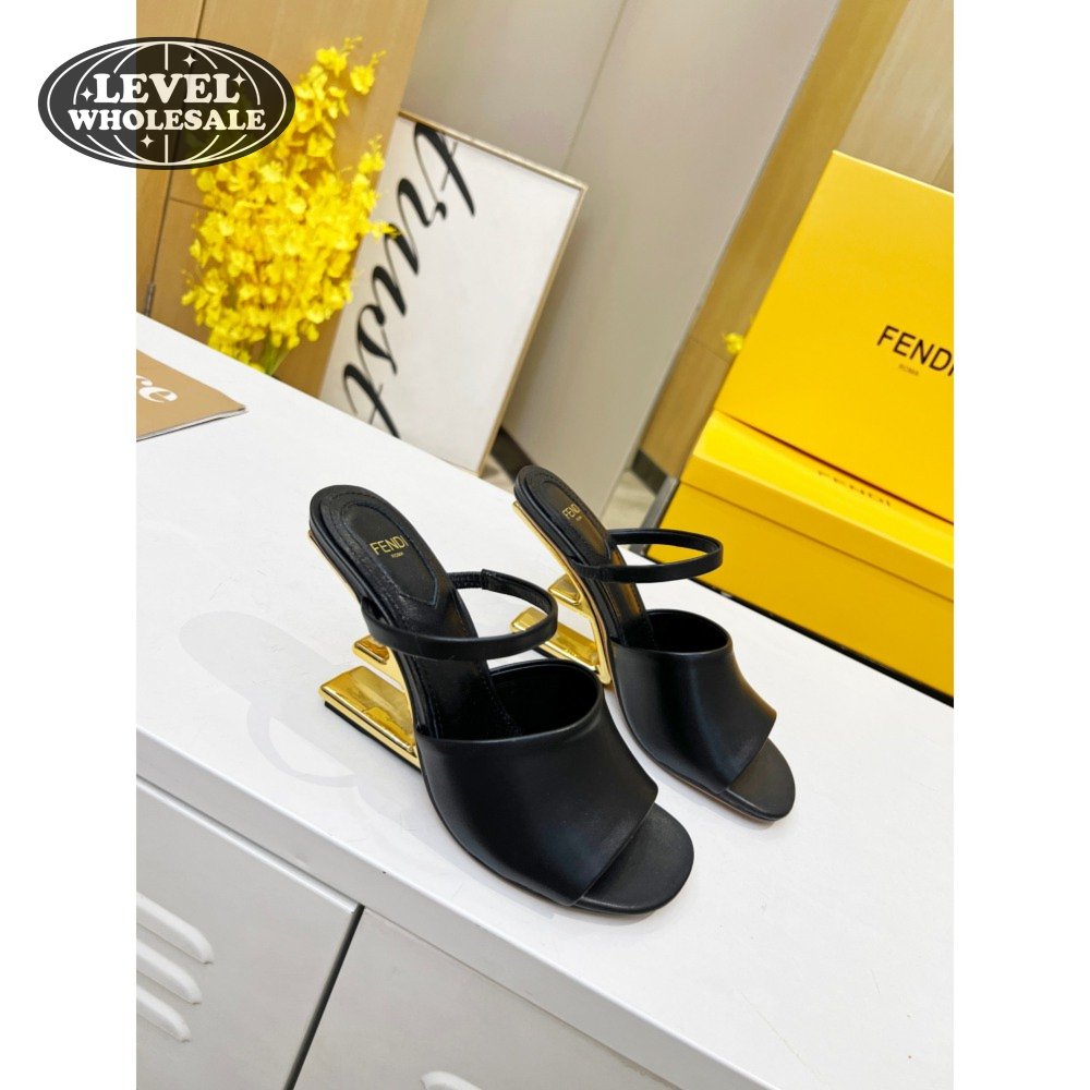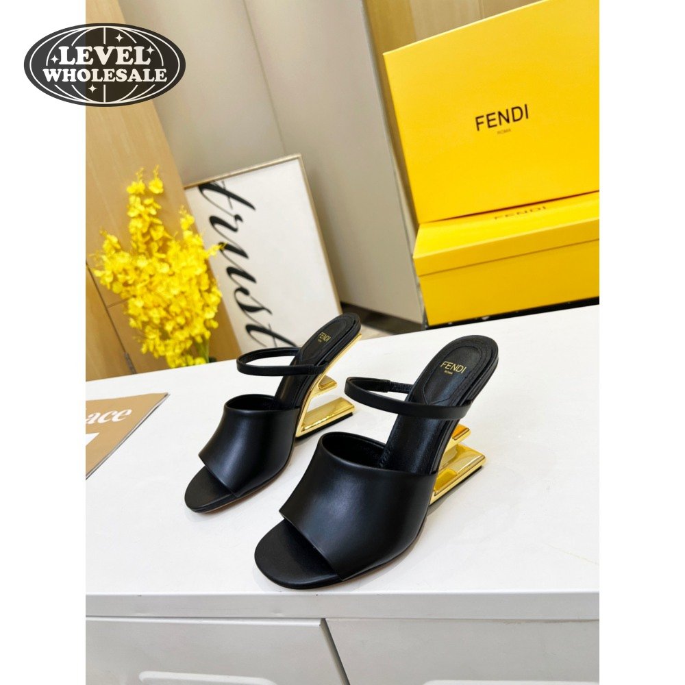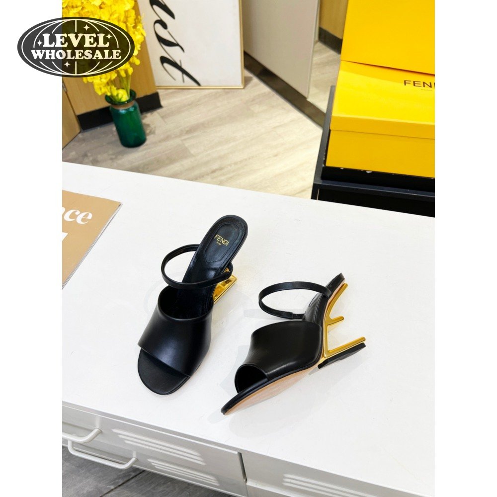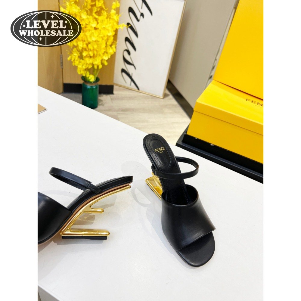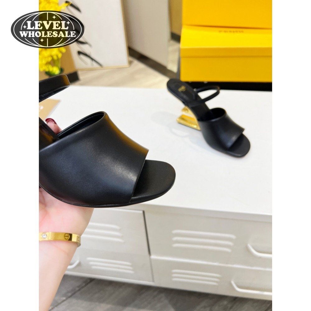 Fendi First Black Leather Heeled Sandals