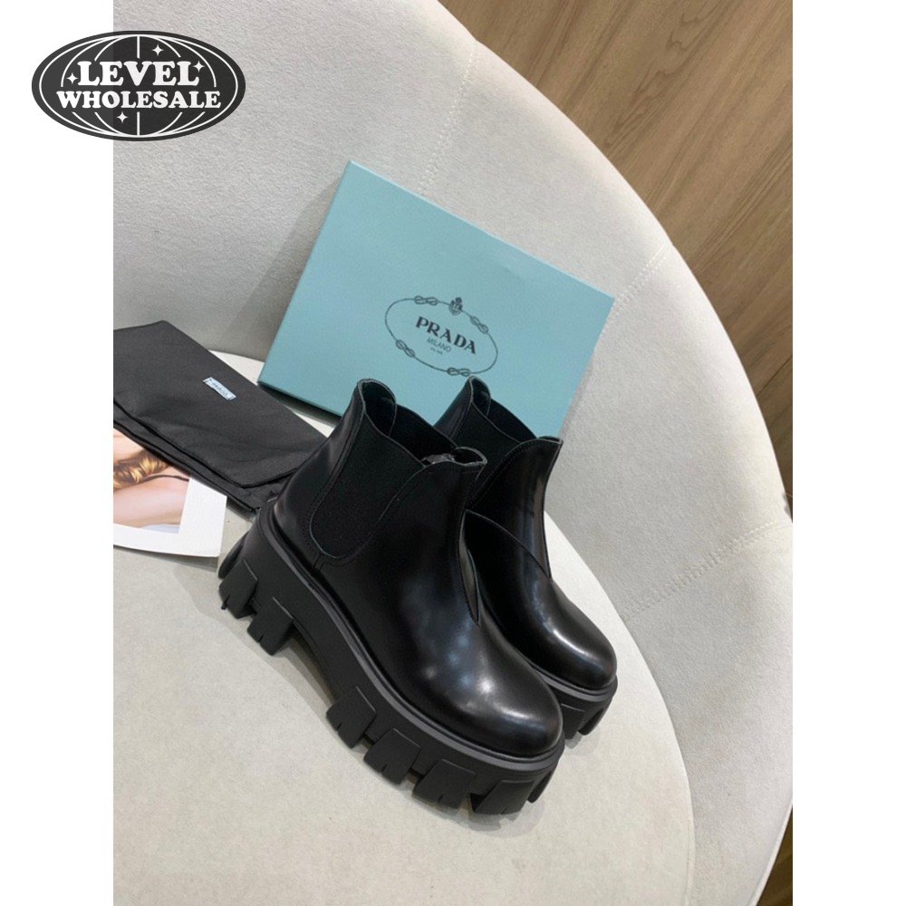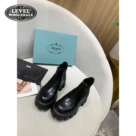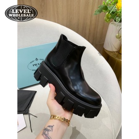 Prada Monolith Brushed Leather Chelsea Boots Black 35-40