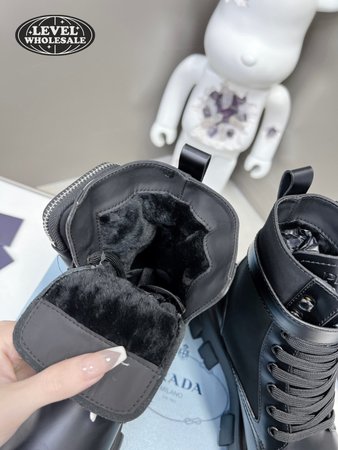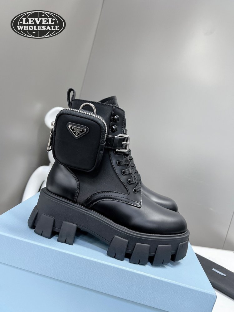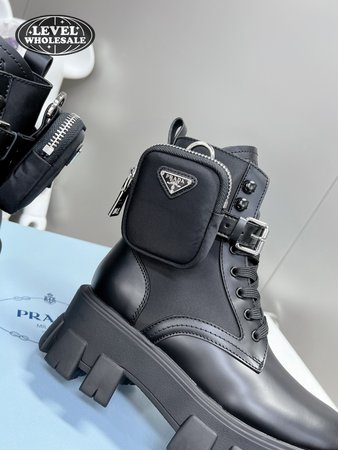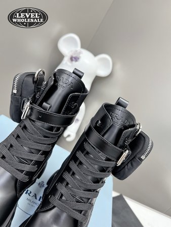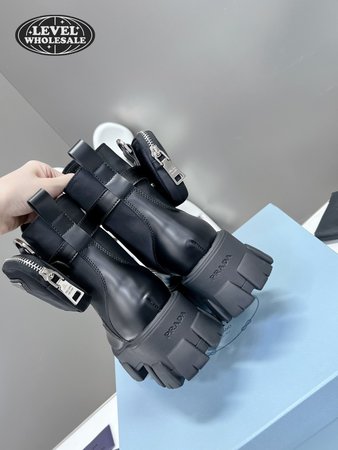 Prada Monolith Leather And Nylon Fabric Boots 35-40